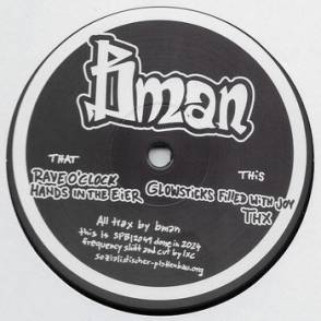 "Dubcore Volume 25 features Bman from Belgium. Beside pushing out anything related to breaks and bass Bman runs the label Monkey Bussiness and its sideboard for more jungle related More Fire Records. On this Dubcore release he went hyped and stomped filled with joy with some oldschool rave flavor jungle tunes or jungle fever infected rave tunes? Rave O'Clock and Hands In The Eier are emotional ravecore tunes with a ruff edge on the breaks. The other side starts with the happy melody tune Glowsticks Filled With Joy and the the 12inch ends with a more dark pressure jungle tune THX. release date 14 June 2024 on 300 copies 45 rpm vinyl and download.cut and frequency shift by LXC." (label info)