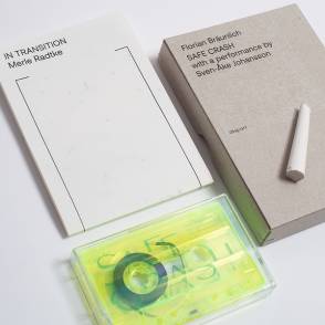 "The work "Safe Crash" by visual artist Florian Bräunlich consists of porcelain drumsticks, plastic buckets, a wooden platform, varnish, cymbals, cymbal stands, a floor tom and a spotlight on which the second release of "dispari" is based. A sound recording witnesses Sven-Ake Johansson's performance of Florian Bräunlich's "Safe Crash" at HFBK, Hamburg in September 2020. The moment Johansson begins to play with the porcelain drumsticks, he transfers them into another state. In the course of the performance, the melodic-rhythmic sounds shift perceptibly towards the material exploration of the porcelain. Johansson - a style-defining drummer of the German free jazz era of the 60s and 70s; from the 80s onwards, he pursued an artistic path as a music performer in the circles of fine arts and new music - works out all aspects and parameters of the material's sonority, tries to make the objects audible in their quality. His playing is an immediate response to the sound of the things he is working with... Cardboard box, single sided C-28 cassette, porcelain drumstick splinter, hand-printed letterpress poster, postcards. Edition of 100" (label info)